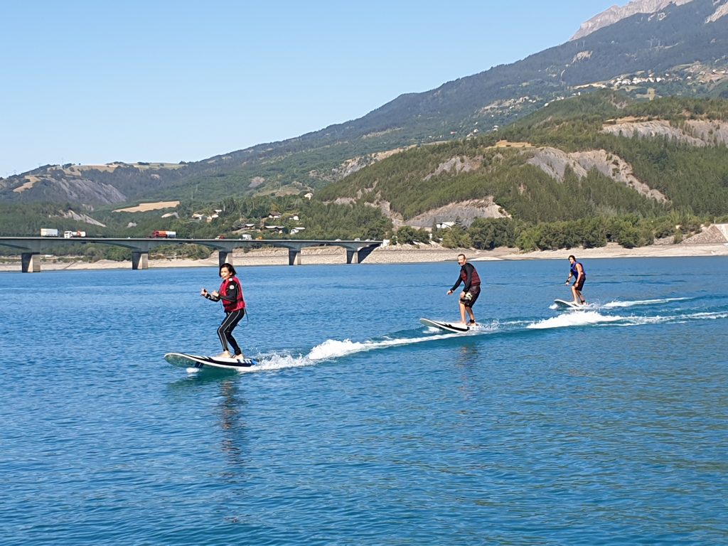 at www.e-surfer.fr we ride on water that is always ultra flat, in pure water. The artificial lake of Serre-Ponçon is fed by the Durance which takes its source a little more water in the mountains. In summer the water is extremely good, always around 24 ° C.