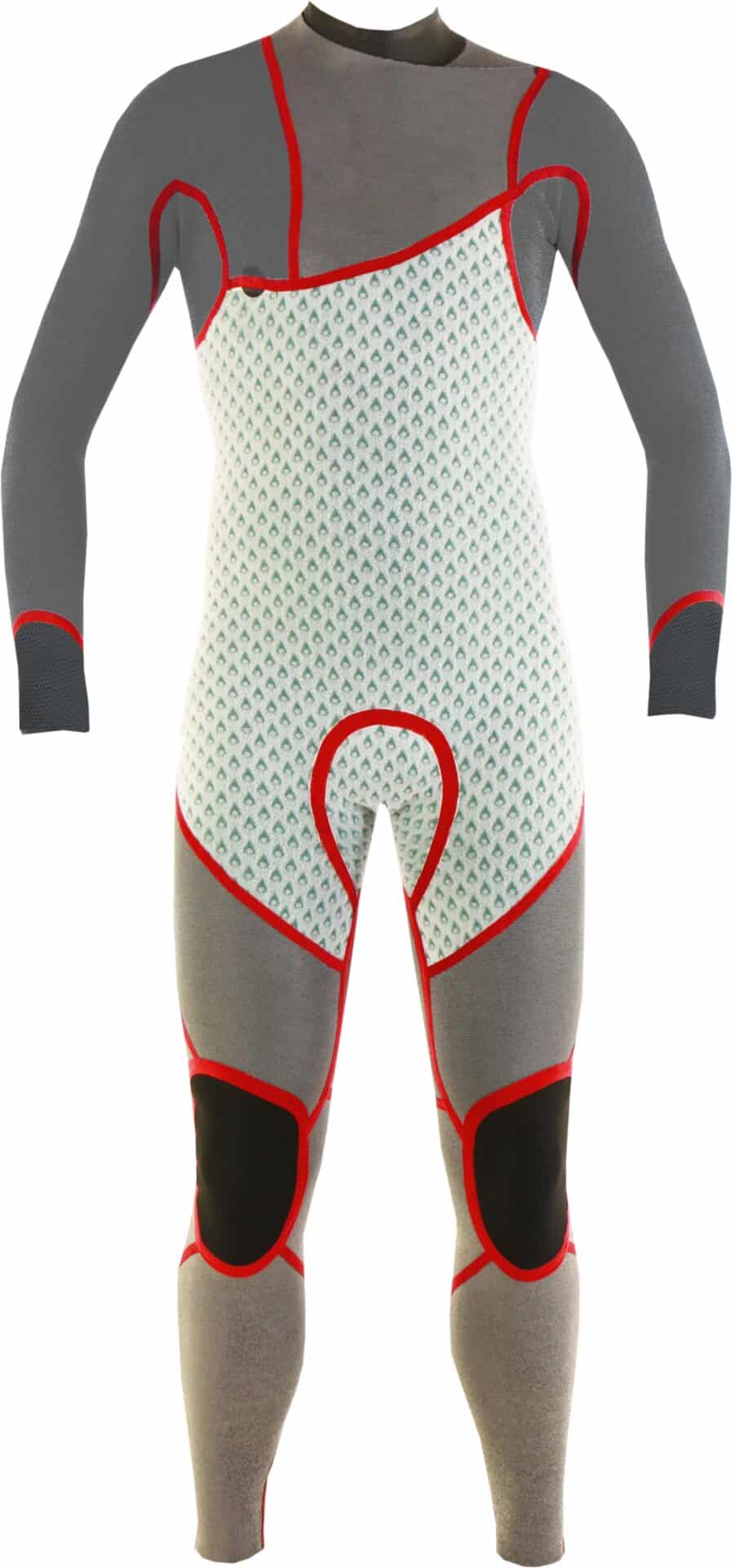 – Finitions: Thermofusion des extrémités des manches fused edge pincées + bande de colle pour plus de durabilité et arrière des genoux debossés pour un gain de confort à la flexion