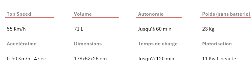 • 1,9 Kwh : jusqu’à 40 min de ride